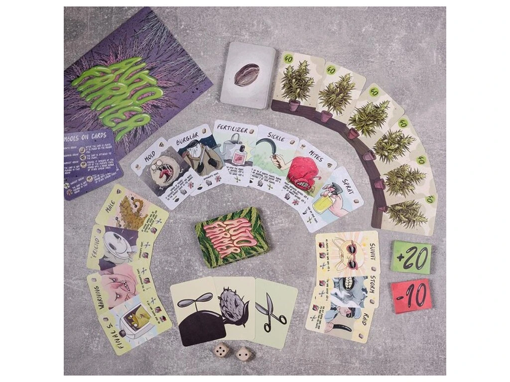 Prozkoumejte radosti a strasti malopěstitelů v kompetitivní hře o pěstování konopí pro 2-4 hráče. S vylepšeným vizuálem hracích karet a brožury pravidel.