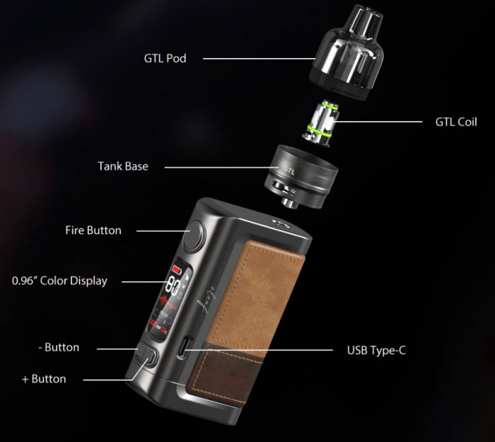 Podrobný popisS radosťou predstavujeme novú generáciu sady Eleaf iStick Power 2. iStick Power 2 sa vracia k jednoduchému krabicovému tvaru pôvodného iStick Power a vyznačuje sa štýlovým dizajnom z farebných blokov kože a je veľmi pohodlný na držanie. Eleaf iStick Power 2 je napájaný veľkou vstavanou batériou s kapacitou 5000 mAh s rýchlym 2A nabíjaním. Po druhé, iStick Power 2 má vo vnútri inteligentný čip, ktorý podporuje režimy POWER, SMART a VOLTAGE, ktoré majú funkcie inteligentného odporúčania optimálneho výkonu/napätia pre rôzne špirálky a zapamätania si vašich bežných nastavení. Vďaka veľkému a jasnému 0,96" farebnému TFT displeju si ľahko prečítate dátumy vapovania a zvolíte si svoju obľúbenú farbu. Eleaf iStick Power 2 je navyše vybavený 4,5ml GTL Pod Tankom. GTL Pod Tank má systém dvojitého prúdenia vzduchu, ktorý je vhodný pre vapovanie DL/RDL alebo MTL. Vďaka špirálke GTL 0,4 ohm/GTL 0,8 ohm vám zariadenie Eleaf iStick Power 2 prinesie optimálnu chuť a masívny oblak pary.